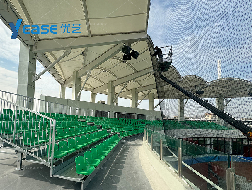 堅固耐用的鋼結構看臺系統(tǒng),滿足戶外場館長期使用與高承載要求。